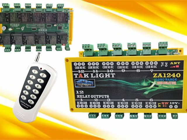 کنترلر 12 رله 30 آمپری ریموت کنترل و گیرنده 12 کانال ریلی MAXON ZA1240